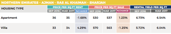 Prices have been more stable in the Northern Emirates. Always the cost effective option for budget conscious renters and buyers, many of whom commute to and from Dubai each day. Prices moved up and down in the very low single digits across the Northern Emirates in both sale and rent over the past 6 months.